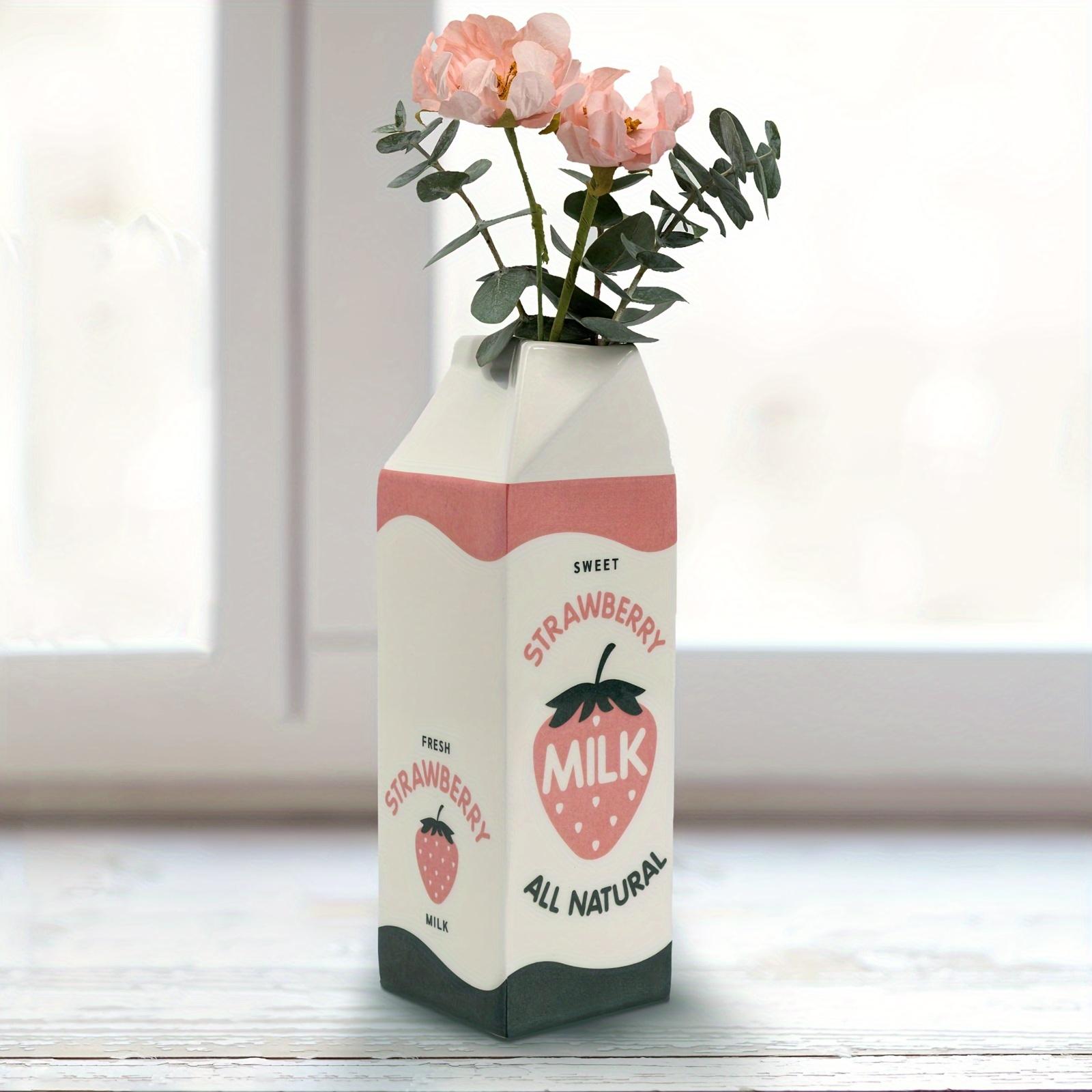 Vintage Mjölkkartongvas Keramisk, Rektangulär, Dekorativ med Färska Jordgubbar, Mjölkdesign, Idealisk för Hem-, Kök-, Kontorsinredning, Söta Vaser ros