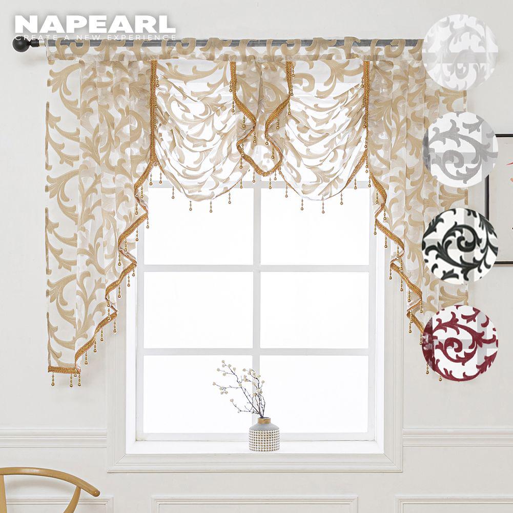 1 PC Napearl tiulowa zasłona dekoracyjna zroszony zasłona Valance Design moda okno salon sama zasłona kremowy