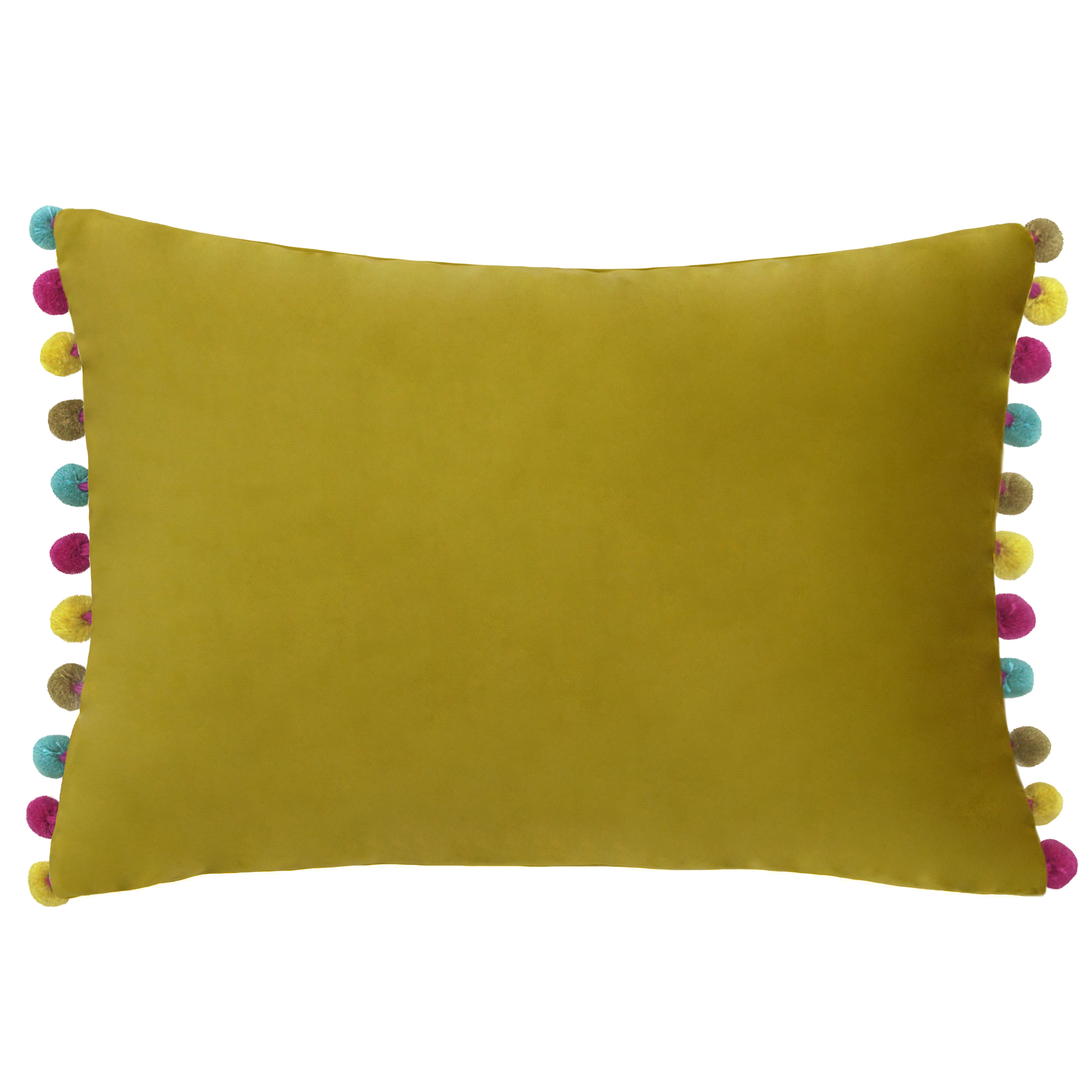 Paoletti Fiesta Velvet Pom Pom Trimmed Cushion Cover - Yellow - One Size | Paoletti Sale | Discount Designer Brands