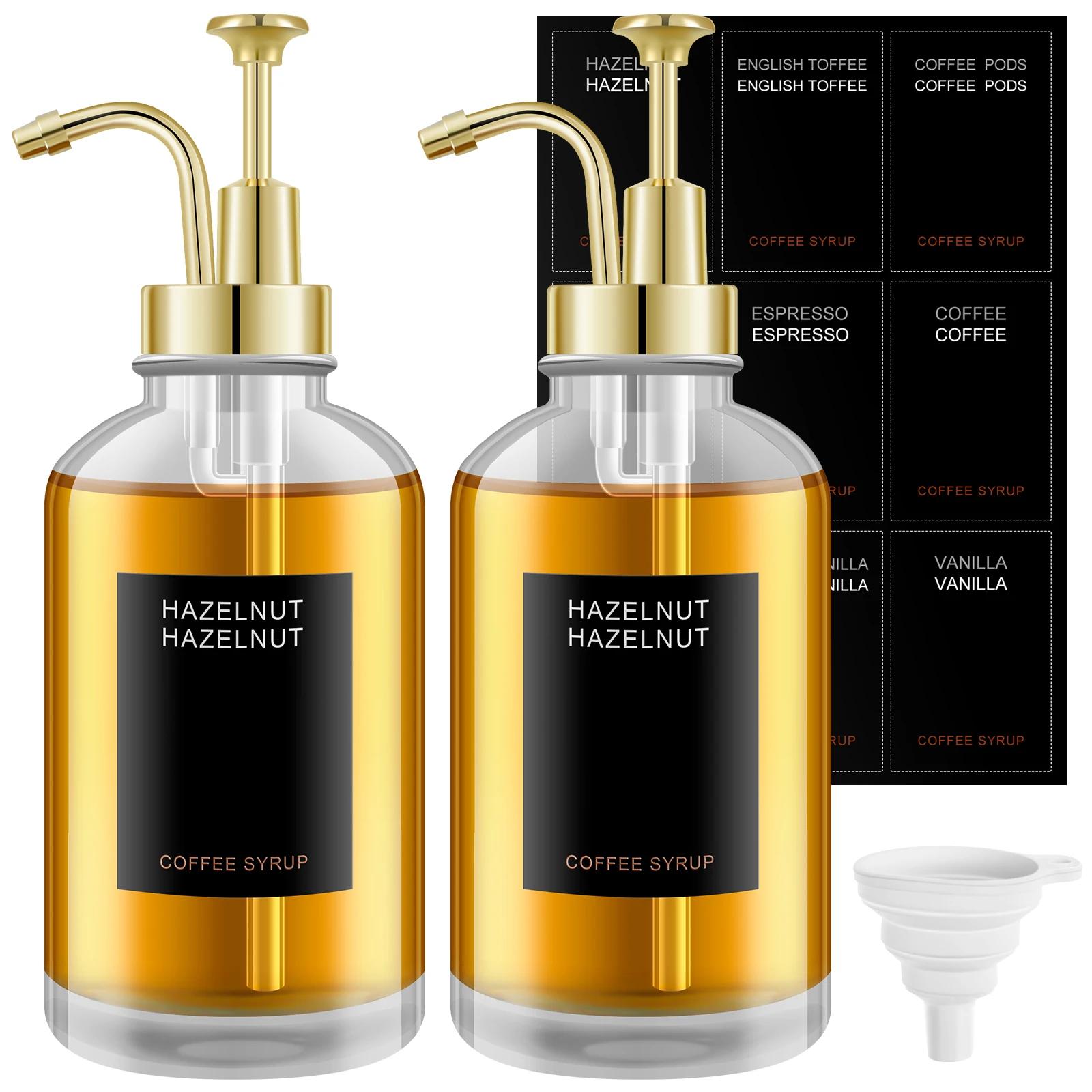 2 stk kaffesirupdispenser sett med etiketter trakt 500 ml gjenbrukbar glassflaske dispenser klar kaffesirupflaske BPA-fri