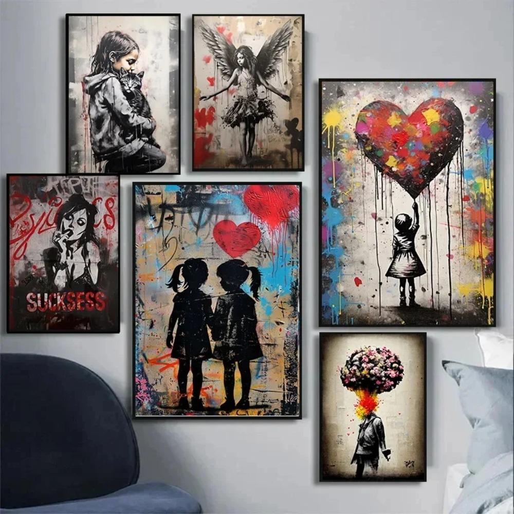 Pop Street Graffiti Väggkonst Affischer Banksy Pojke Flicka med Ballong på Canvas Affischer Tryck Målning Vardagsrum Heminredning Gåvor