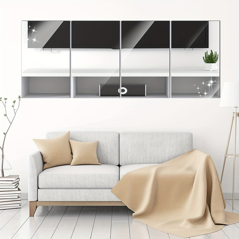 Lot de 6 Stickers Miroir en PVC, Assemblables sans Perçage, Auto-adhésifs, 10×15cm