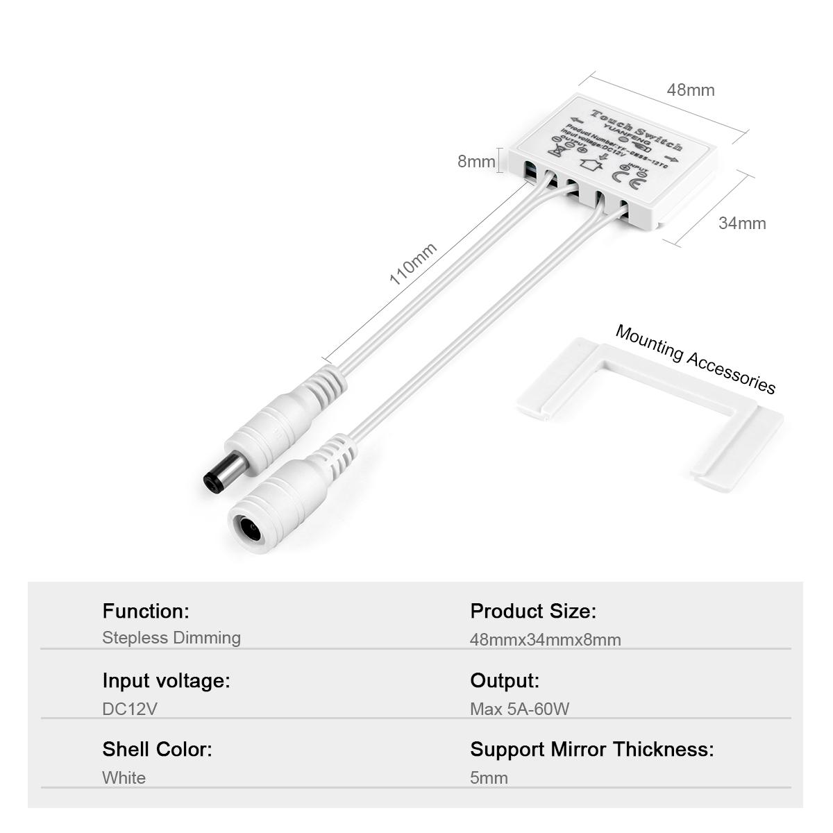 12V 5V USB LED Berøringssensor Bryter Gjennomtrengelig Speil Dimmer For Baderom Toalettbord Sminkespeil Lys Bakgrunnsbelysning Dec