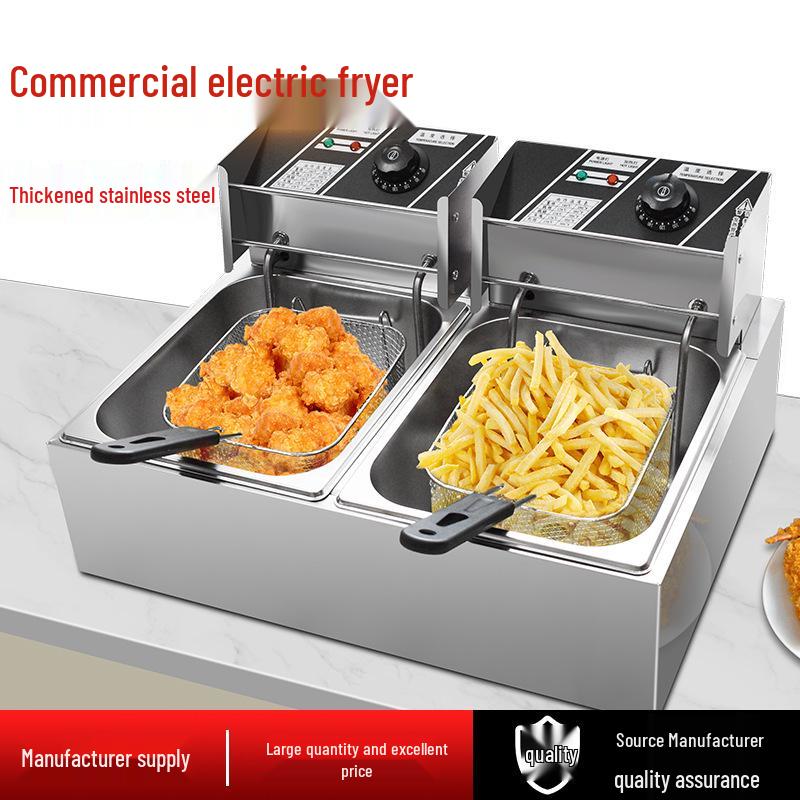 Dubbele Tank RVS Elektrische Frituurpan - Constante Temperatuur Frituurpan voor Spiezen, Friet, Streetfood.