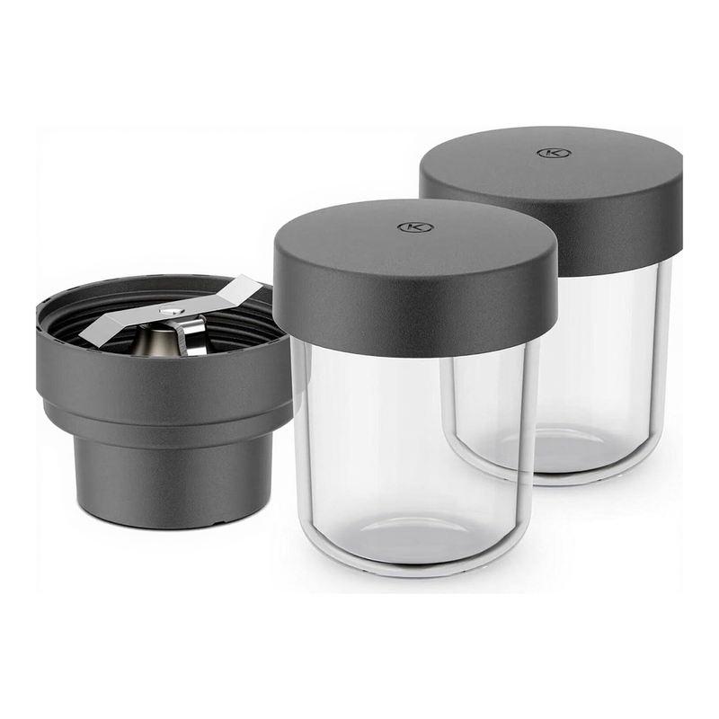 Kenwood Mini-Zerkleinerer & Grinder KAG30.000GY, Glaszubehör, Go Collection, Zerkleinerer & Grinder für Kenwood Go Küchenmaschine, 2 Glasbehälter, abnehmbare Edelstahlklingen, spülmaschinenfest, 100 ml