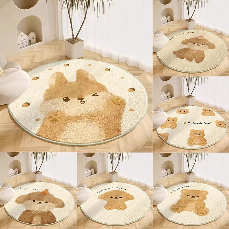 Kreskówkowy Niedźwiedź Dywan Okrągły do Pokoju Dziecięcego Mata Podłogowa do Domu Dywanik do Salonu Mata Podłogowa do Łazienki Dekoracja Sypialni
