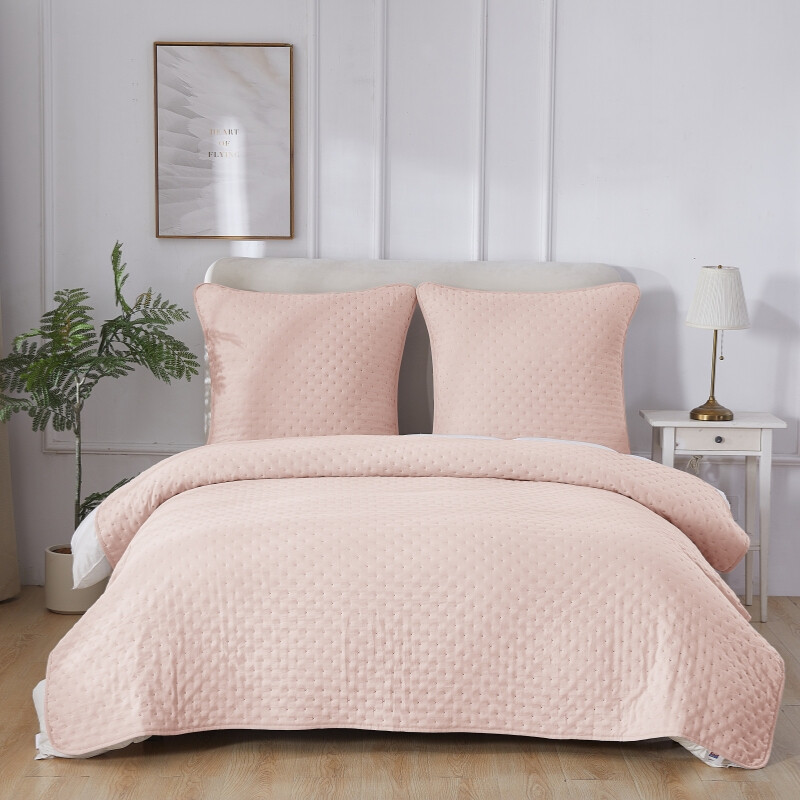MEROPE, Couette Matelassée en Polyester avec 2 Taies d’Oreiller, 200x200/80x80cm, Rose, Lot de 3