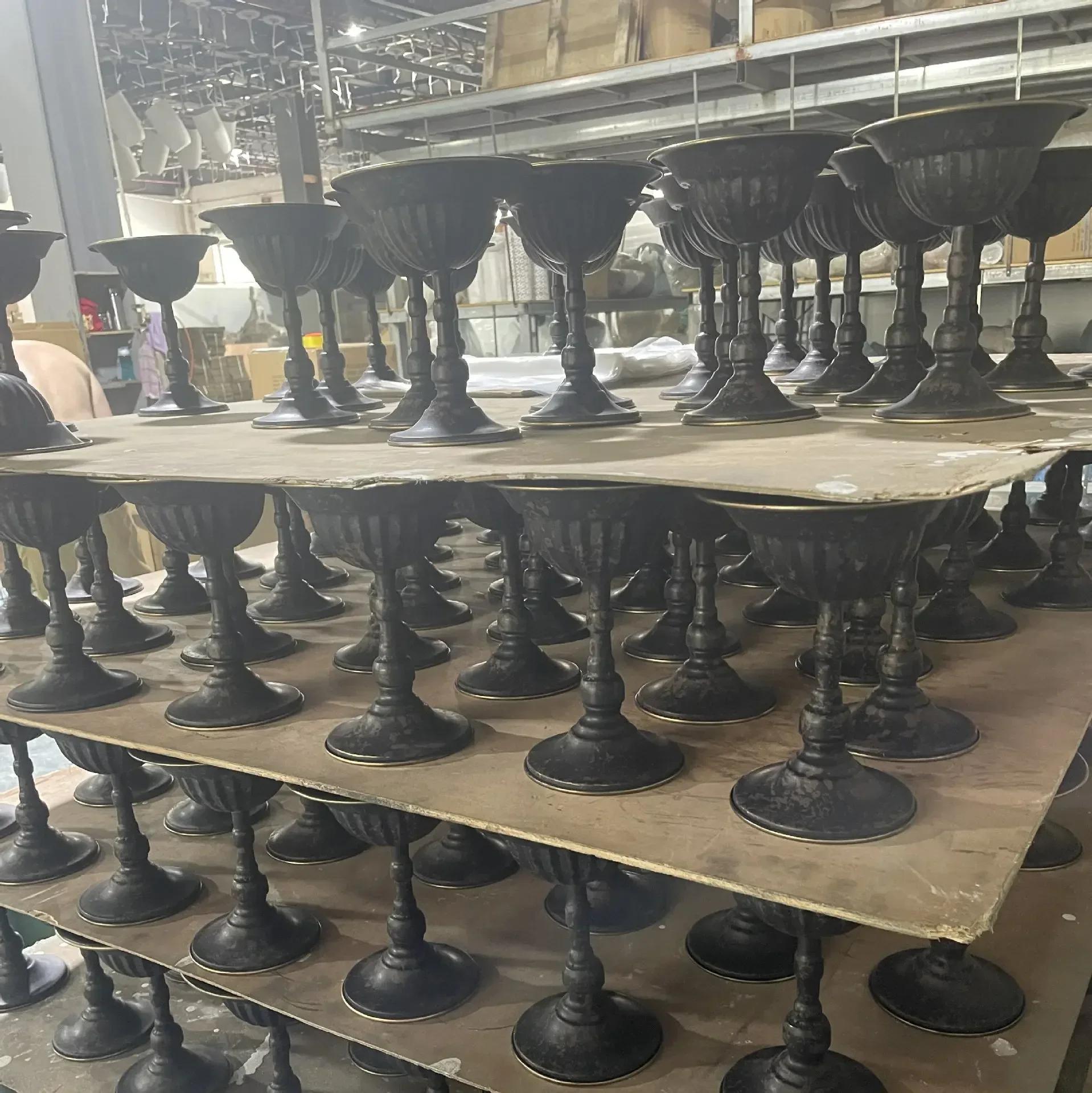 Retro Zwarte Hoge Voet Bloempot Metaal IJzerkunst Bloembak Huisinrichting Decoratie Verjaardagsfeest Banket Ornament