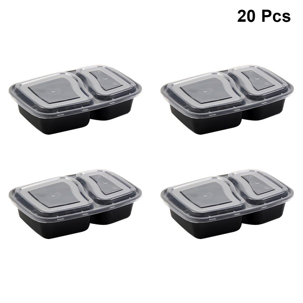 20 stk 1000 ml Engangsbeholdere for Måltidsforberedelse 2-roms Matoppbevaringsboks Mikrobølgeovnssikker Lunsjbokser (Svart, med lokk) Svart