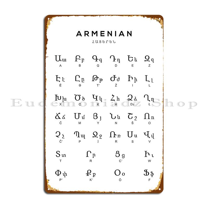 Armenian Alphabet Chart Armenia Language Chart White Metal Sign Retro Printing Bar Cave Pub Customize Tin Sign Poster