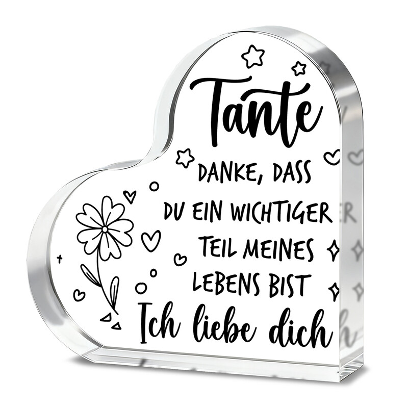 Alphynix 1 Stück Herz-Akryl-Plakette, „Tante DANKE DASS DU EIN WICHTIGER TEIL MEINES LEBENS BIST“, Geschenk für die Tante mit handgezeichneten Sternen und floralen Motiven
