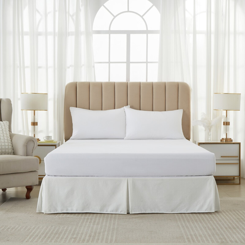 MEEALLHOME Jupe de lit en tissu gaufré blanc - 140 x 200 + 50 cm