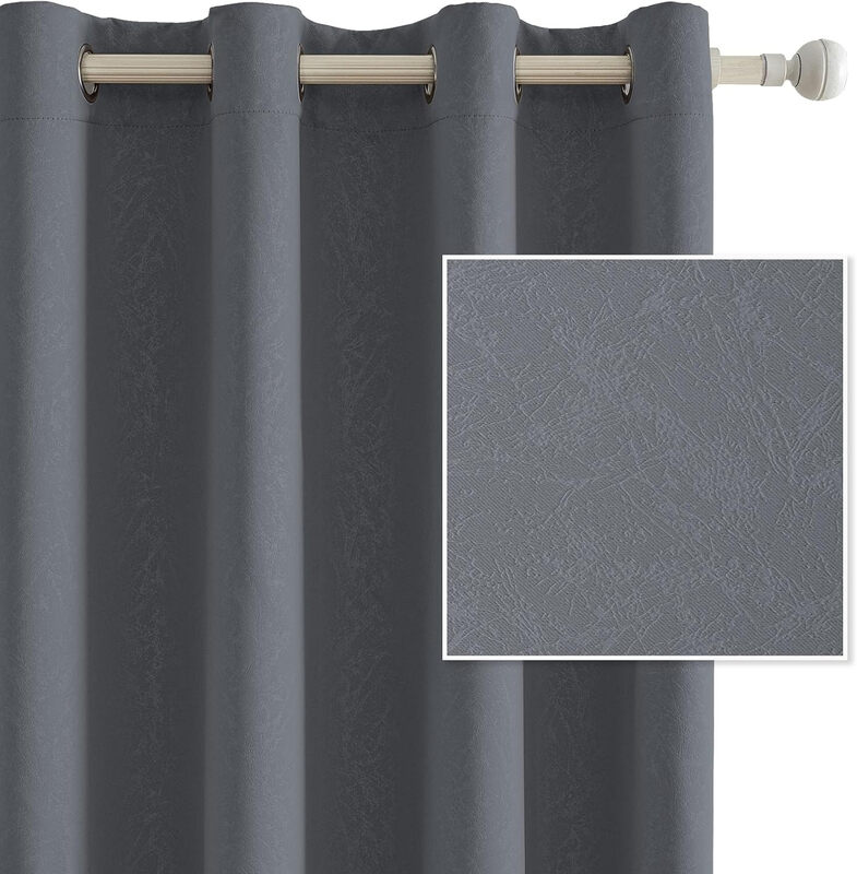 YSTYLE Rideaux occultants pour chambre et salon - Lot de 2 panneaux, rideaux thermiques isolants, 140 x 225 cm, LUAN, Gris foncé