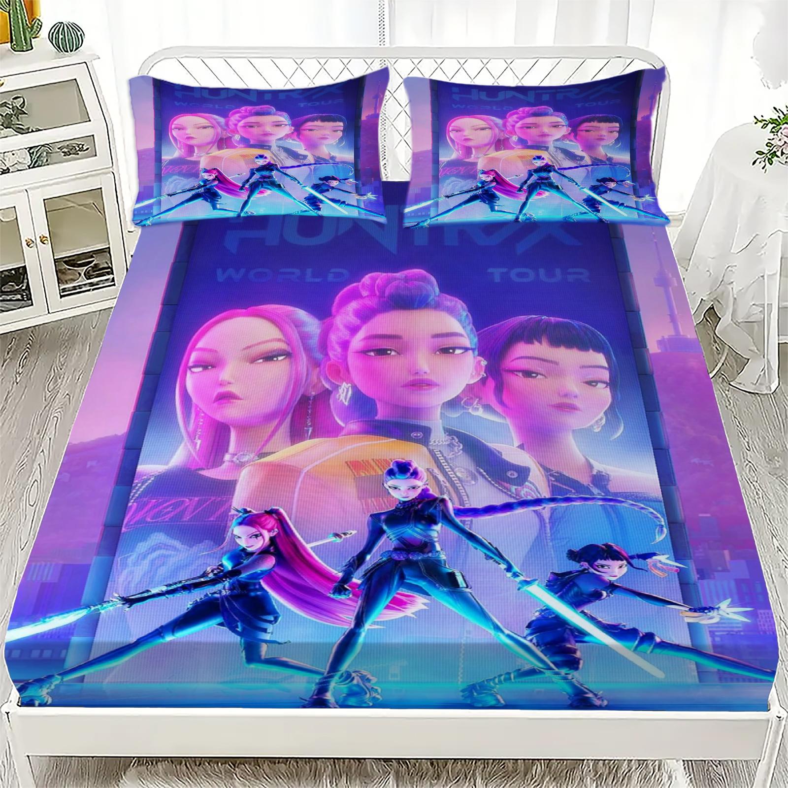 3 st/set K-Pop Sängkläder Demon Hunters Färgglatt Tryck Polyester Student Sovsal Lakan Påslakan Barnpresent Hemtextil