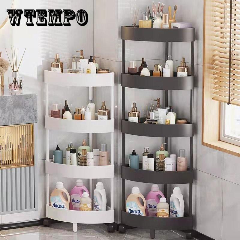 Hoekplank Plastic Keuken Badkamer Driehoek 3/4 Laag Opbergrek Rolwagen met Wielen Uitschuifbare Vloerplanken wit