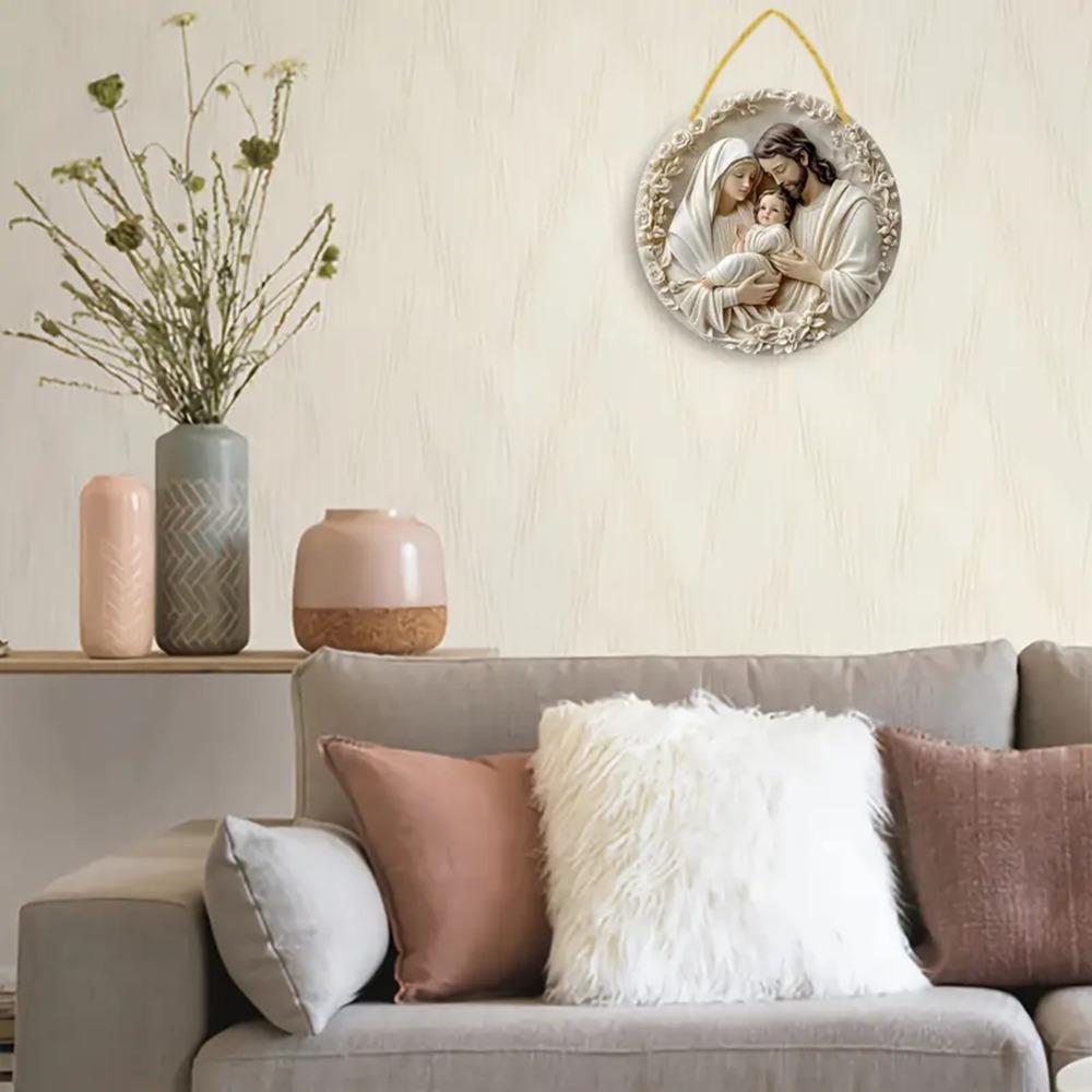 Den hellige familie 2D rund kunstdekor, høykvalitets trykk for stuer, soverom, barer og kafeer.