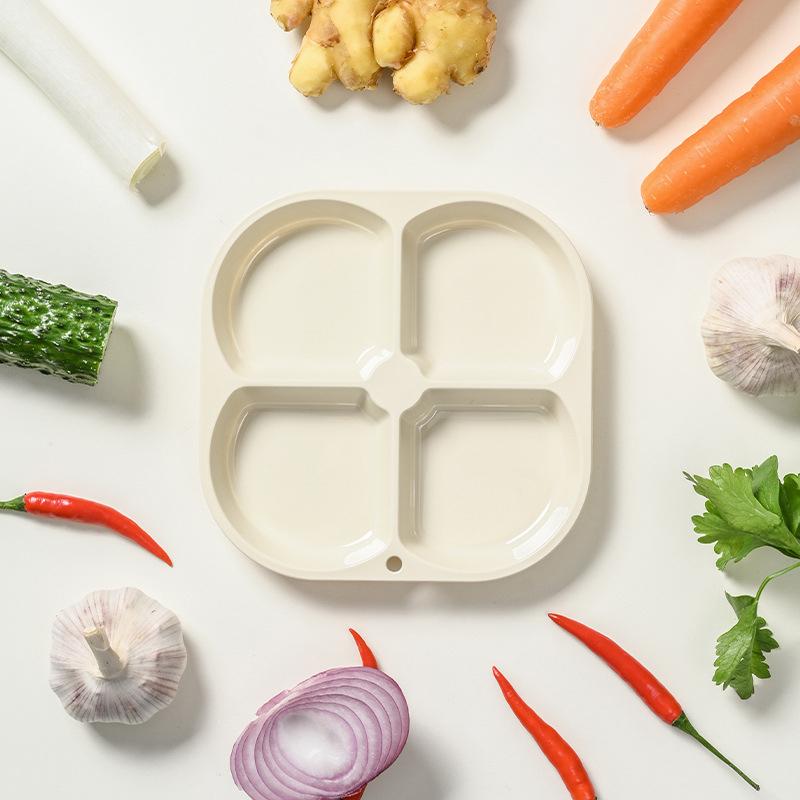 4-roms mattallerkenbrett, delte tallerkener, skålebeskyttende fruktfat, multifunksjonelt delt serveringsbrett Hvit