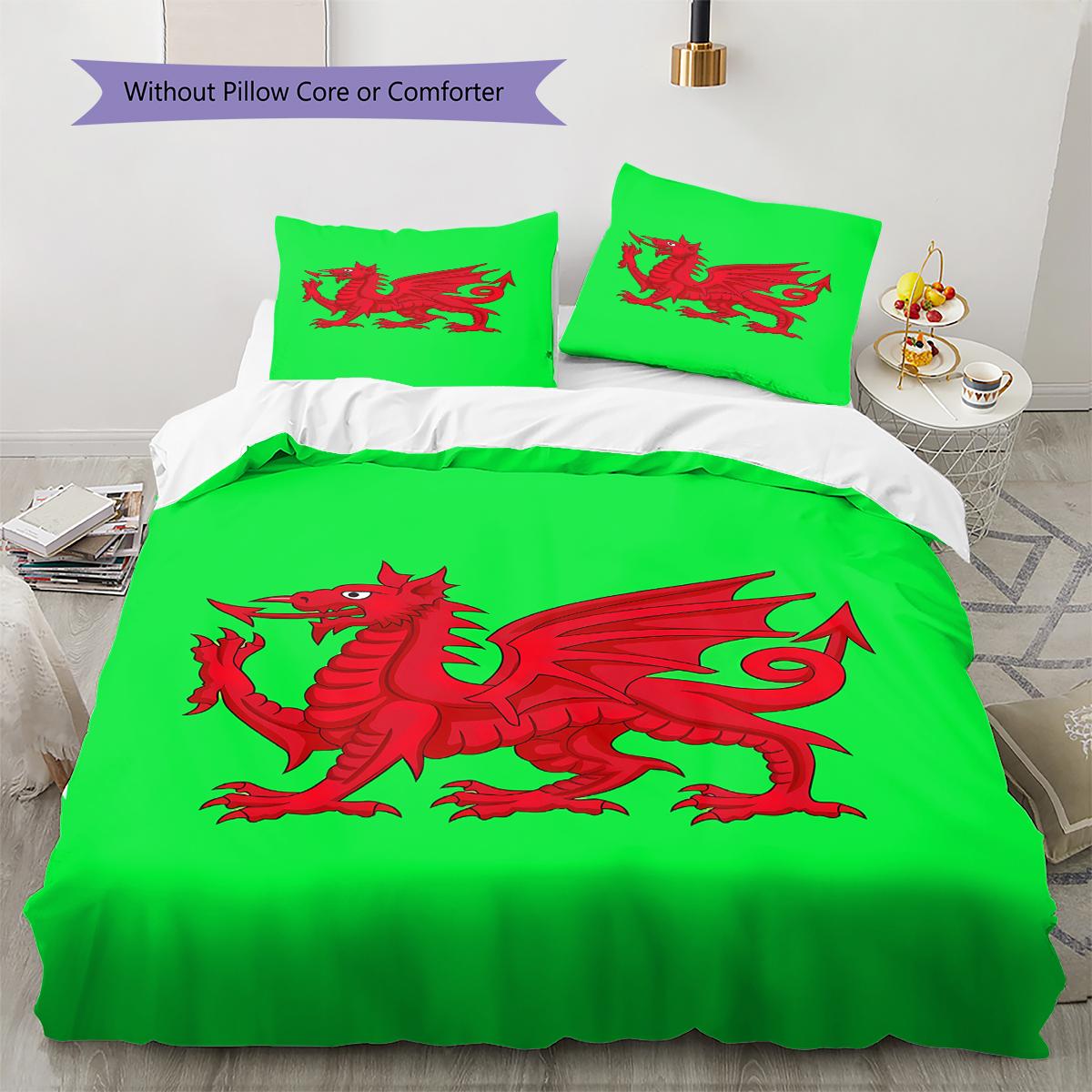 Y Ddraig Goch Pattern Bedding,Quilt Set Quilt Cover Pillowcase Home Birthday Gift (1 * duvet cover + 2 * pillowcase, without core)