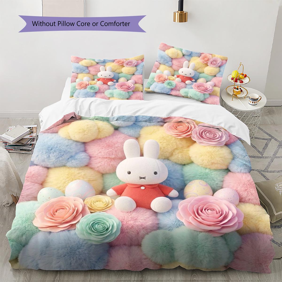 Miffy Pattern Bedding Quilt Set Quilt Cover Pillowcase Home Decoration Birthday Gift (1 * duvet cover + 2 * pillowcase, without core)