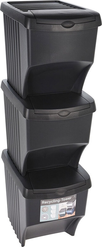 Afvalbak voor eenvoudige recyclingset - 3 stuks, zwart, elk 22 liter