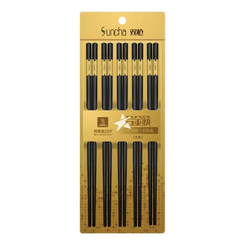 5 Paar Double-Gun-Legierungs-Essstäbchen (Jin Fu)