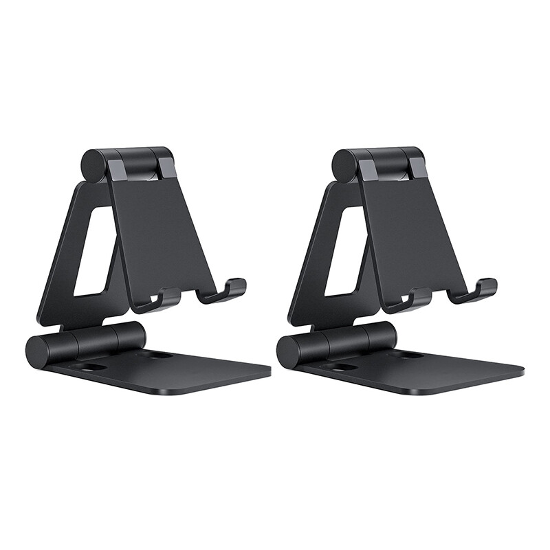 JORDAN&JUDY Lot de 2 supports pour téléphone en aluminium noir, angle réglable, robustes et durables