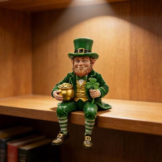 St. Sint-Patricksdag Kabouter Beeldje Klein Geluksklaver Standbeeld Hars Ierse Klaver Kabouter Ornament voor Auto Dashboard Huis Tafel Decoratie