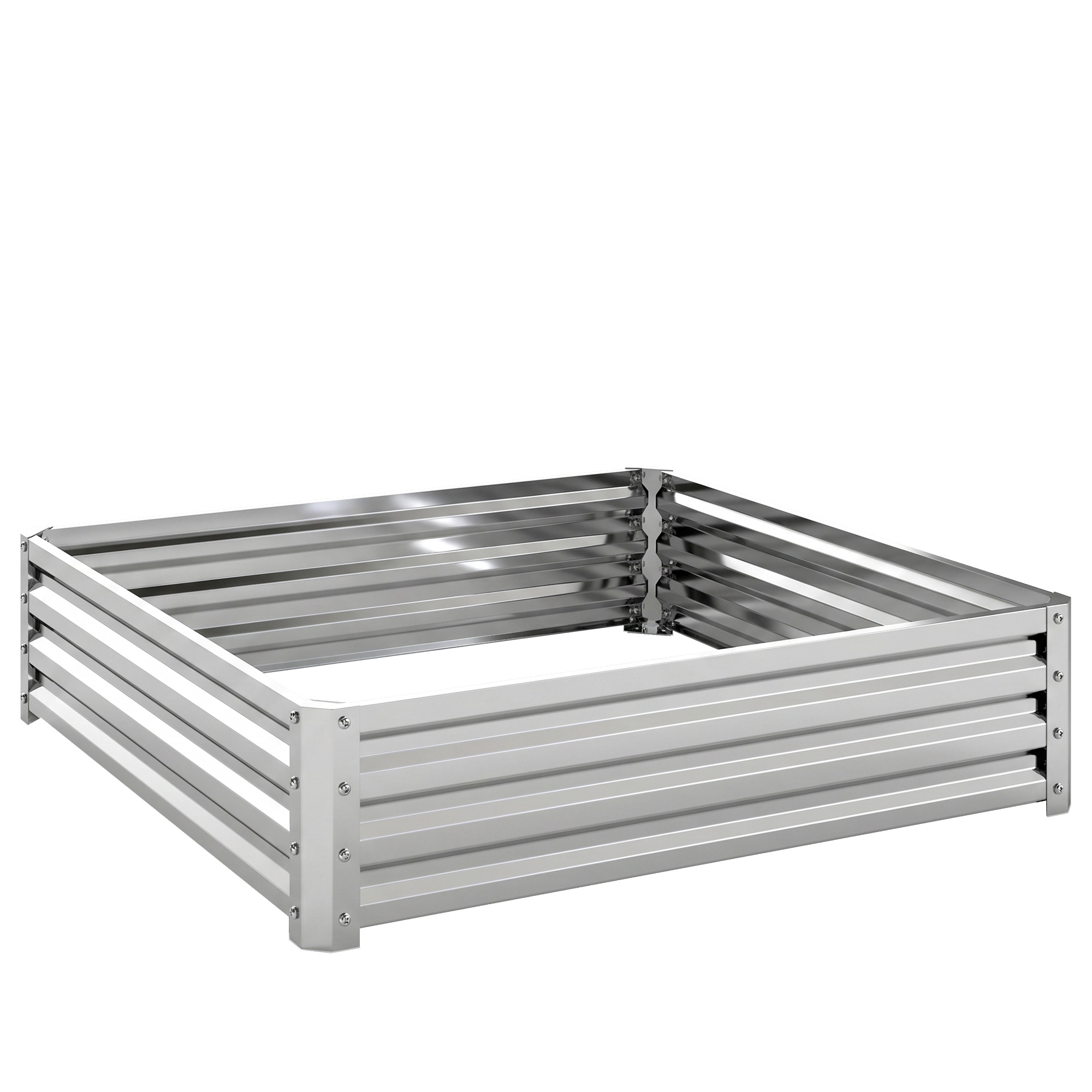 Outsunny Square Raised Garden Bed Box with Weatherized Steel Frame for Vegetables, Flowers, & Herbs, 120 x 120 x 30cm, Silver Tone
