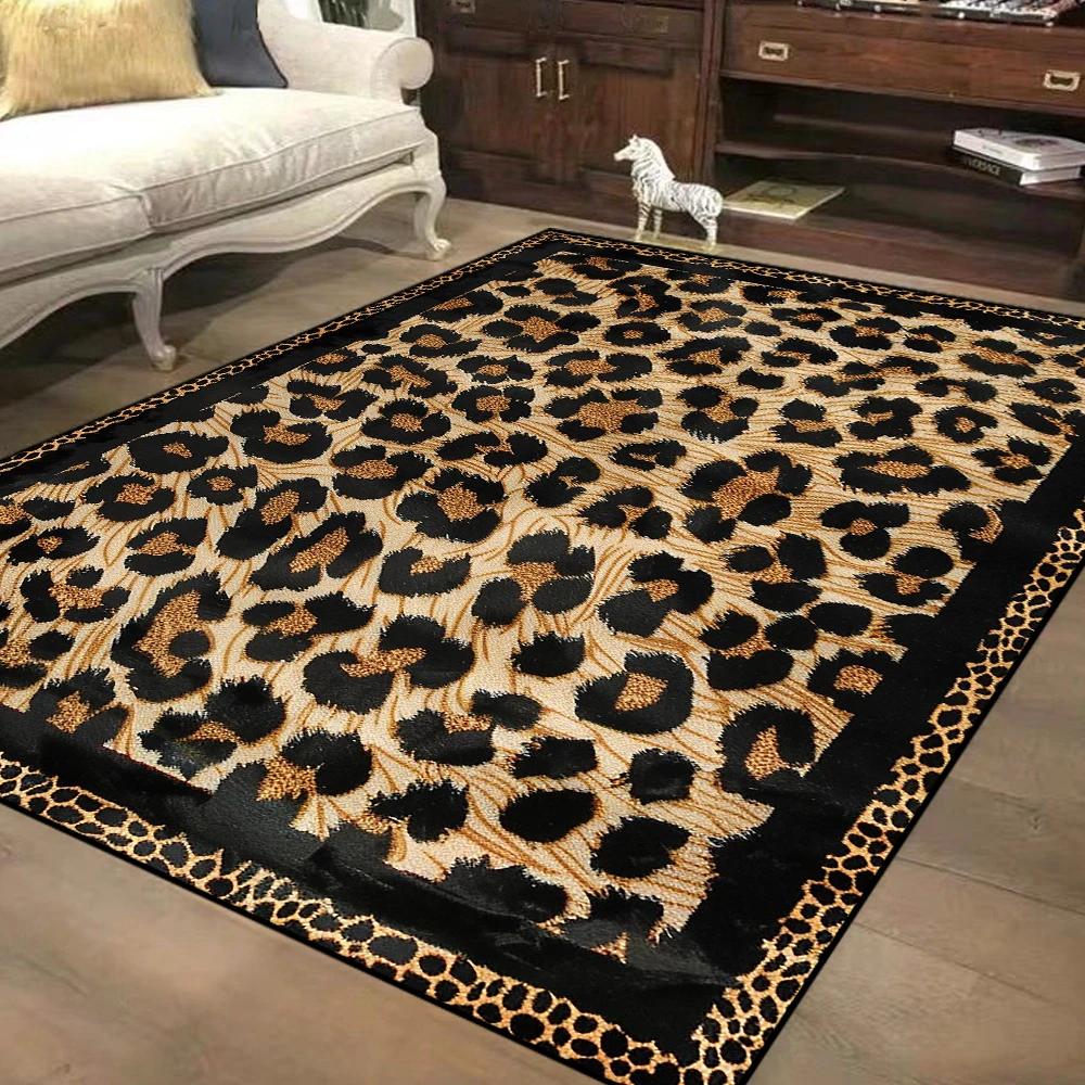 Nordic Style Leopard Decorative Rug for Living Room Large Area Soft Flannel Bedroom Carpet Non-slip Easy Cleaning Study Foot Mat