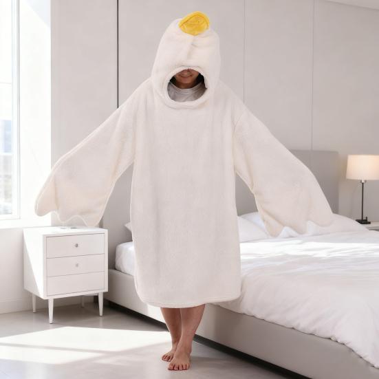 Ganzen Deken Hoodie Onesie Oversized Draagbare Deken Hoodie met Mouwen voor Volwassenen Kinderen Warme Knusse Flanellen Slaapzak wit