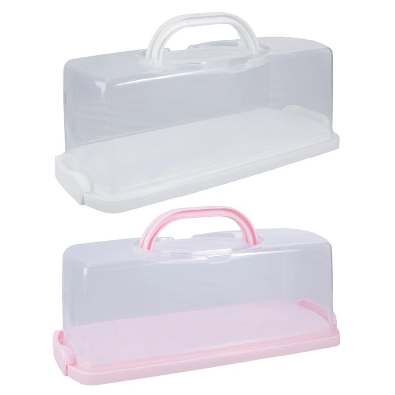 Rektangulär Tårtbitshållare Transparent Brödlåda Med Låsande Lock Bärbar Förvaringsbehållare För Bakverk rosa