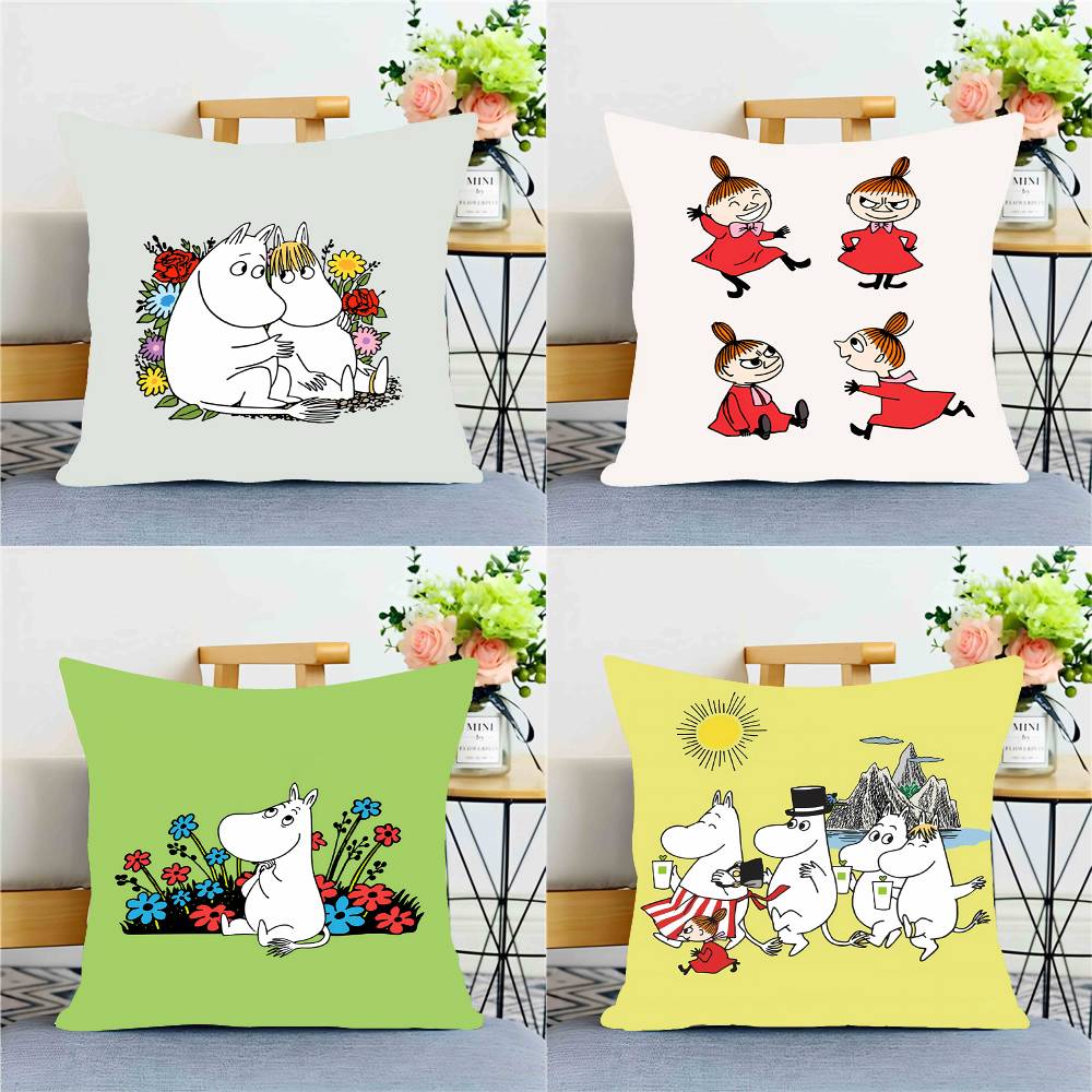 1 szt. Urocza Kreskówka N-MoominS Poszewka na Poduszkę Kwadratowa Sypialnia Sofa Relaks Komfort Poduszka Samochód Dom Dekoracja