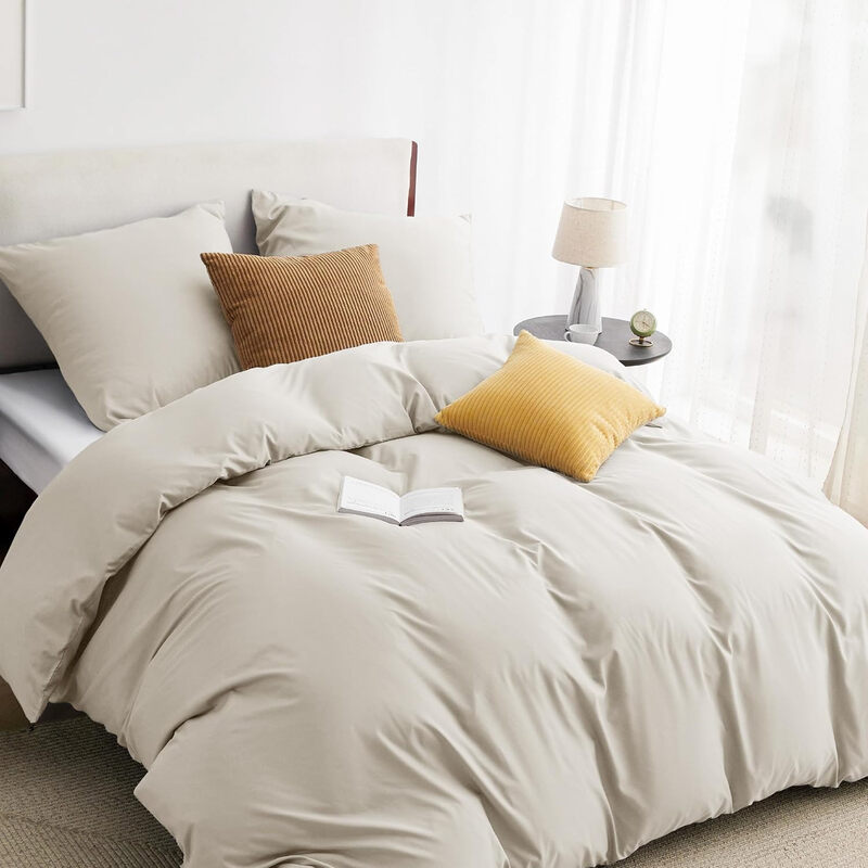 Bedsure Parure de lit 100 % polyester Natural - 1 housse 155 x 220 cm et 2 taies 80 x 80 cm