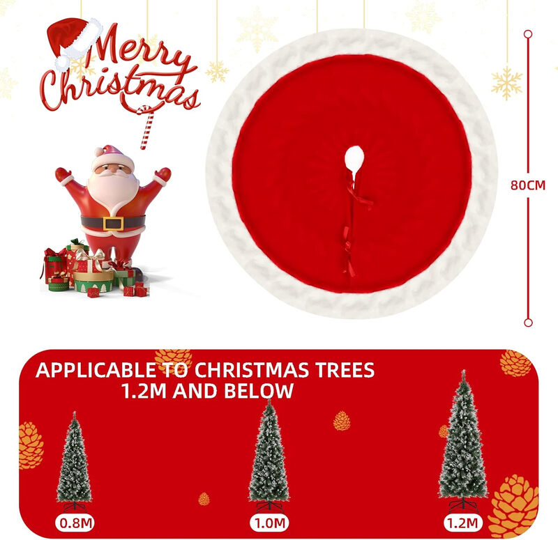 SALCAR Weihnachtsbaumdecke Rund, 80cm Weihnachtsbaum Decke Rot Plüsch Weihnachtsbaumrock, Christbaumdecke Fell für Weihnachtsbaum Tannenbaum und Weihnachtsbaum Deko