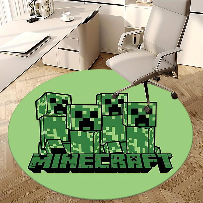 Minecraft Creeper Stoelmat Ronde Vloerkleed - Kantoor Tapijt, Machine Wasbaar, Antislip, Geschikt voor Woonkamers, Slaapkamers