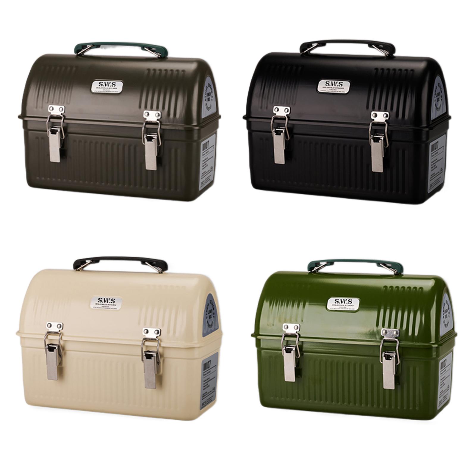Matboks med Håndtak og Lås Vintage Metallmatboks 9.5L Retro Metallbeholdere Oppbevarer Mat Drikke Vannflaske Svart