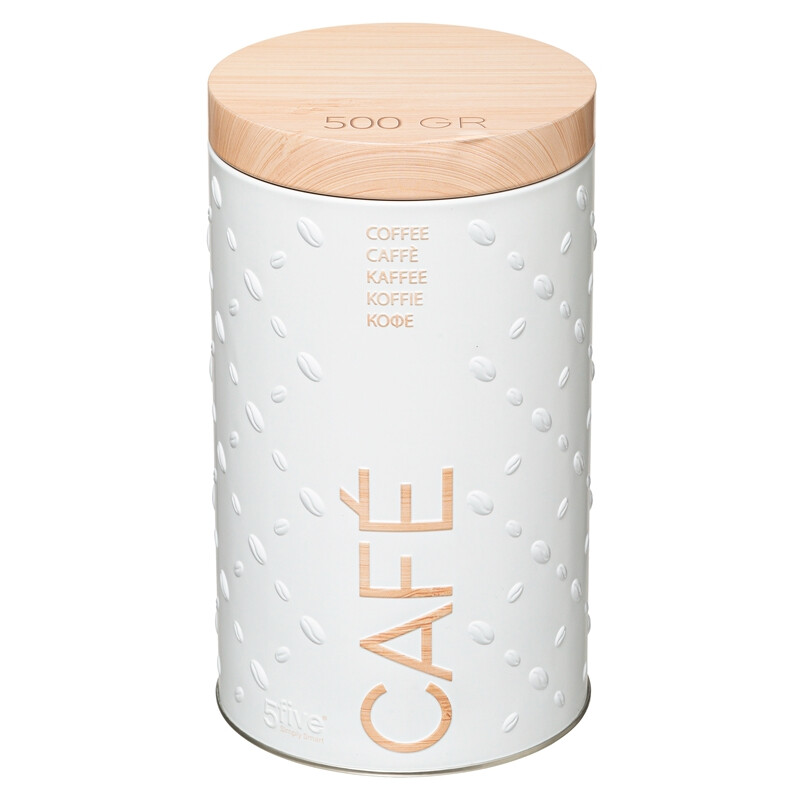 5five Boîte à café en métal scandinave 500 g, blanc, fer et étain, diamètre 11 x hauteur 19 cm