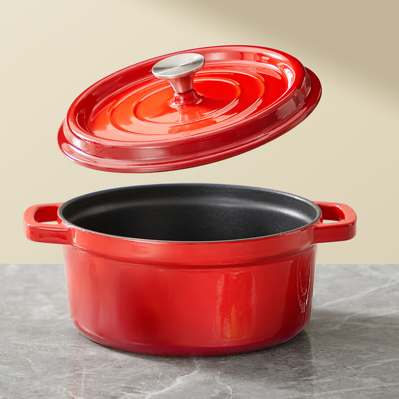COOKER KING Chuanjia Gusseisen-Emaillierter Schmortopf (Dutch Oven), robust, hitzebeständig, chinesisches Rot, 24 cm