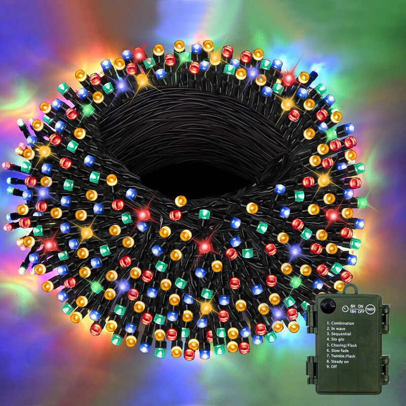 M.TK 19,2m Weihnachtsbaum-Lichterkette 63ft Outdoor Batterie 240 LEDs Wasserdichte Lichterkette Weiß für Weihnachten Balkon Camping Zimmer Party Garten (Ohne Batterie)