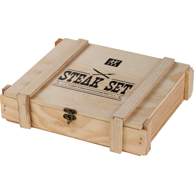 Zwilling Steakbesteck-Set 12-teilig aus Edelstahl in rustikaler Holzkiste