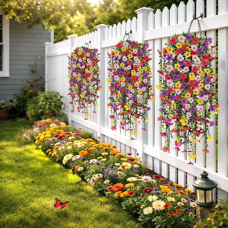 Yuejia Lot de 4 bouquets suspendus de fleurs artificielles avec eucalyptus mélange 5 couleurs - 75 cm