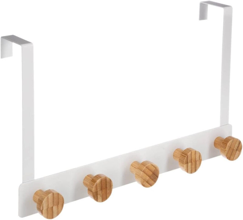 5five Deurhaakrek - Bamboe & Staal, Wit, 5 Haken, 33,5 x 20 cm