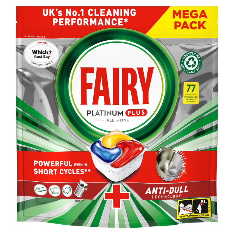 Fairy Platinum All In One Dishwasher Tablets, Lemon, 113 Capsules