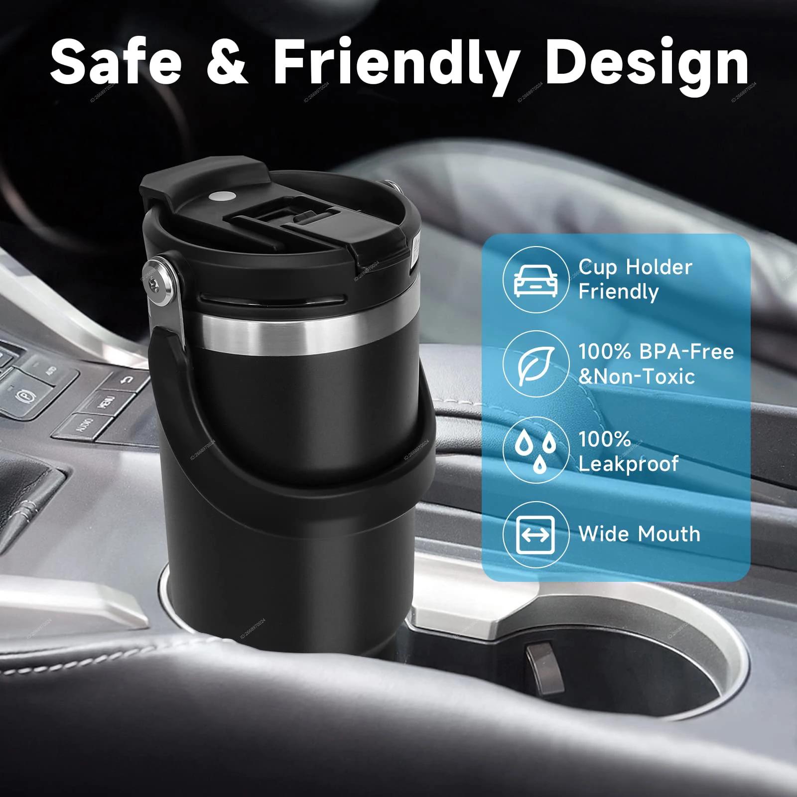 40oz Thermal Bottle With Straw Handle and Lids Drinkware Hot Cold Stainless Steel Thermos Portable Car Coffee Cups Thermal Mug pink