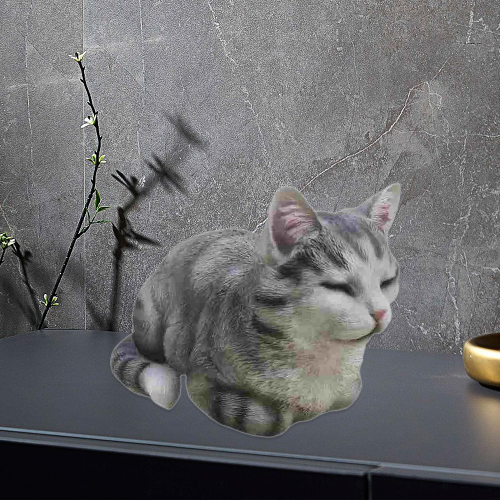 Figurine Statue Chat Endormi Compacte Décorative Résine Sculpture Animale pour Salle à Manger grise
