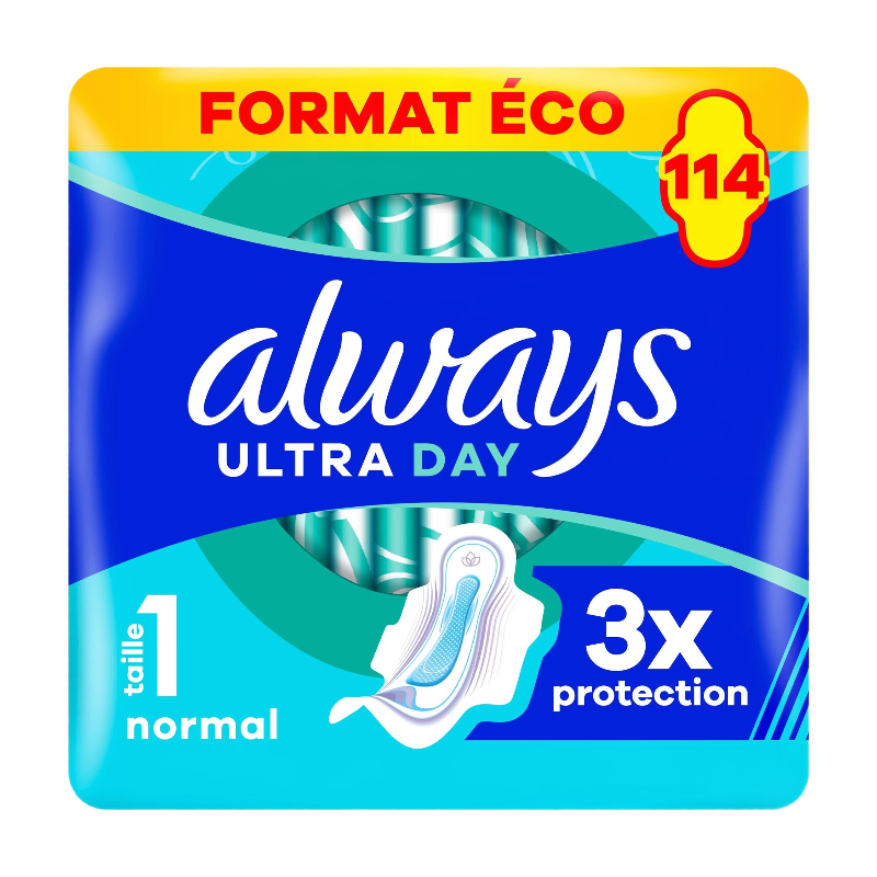 Always Ultra - Serviettes hygiéniques Normal Plus Format Eco - Lot de 114 serviettes