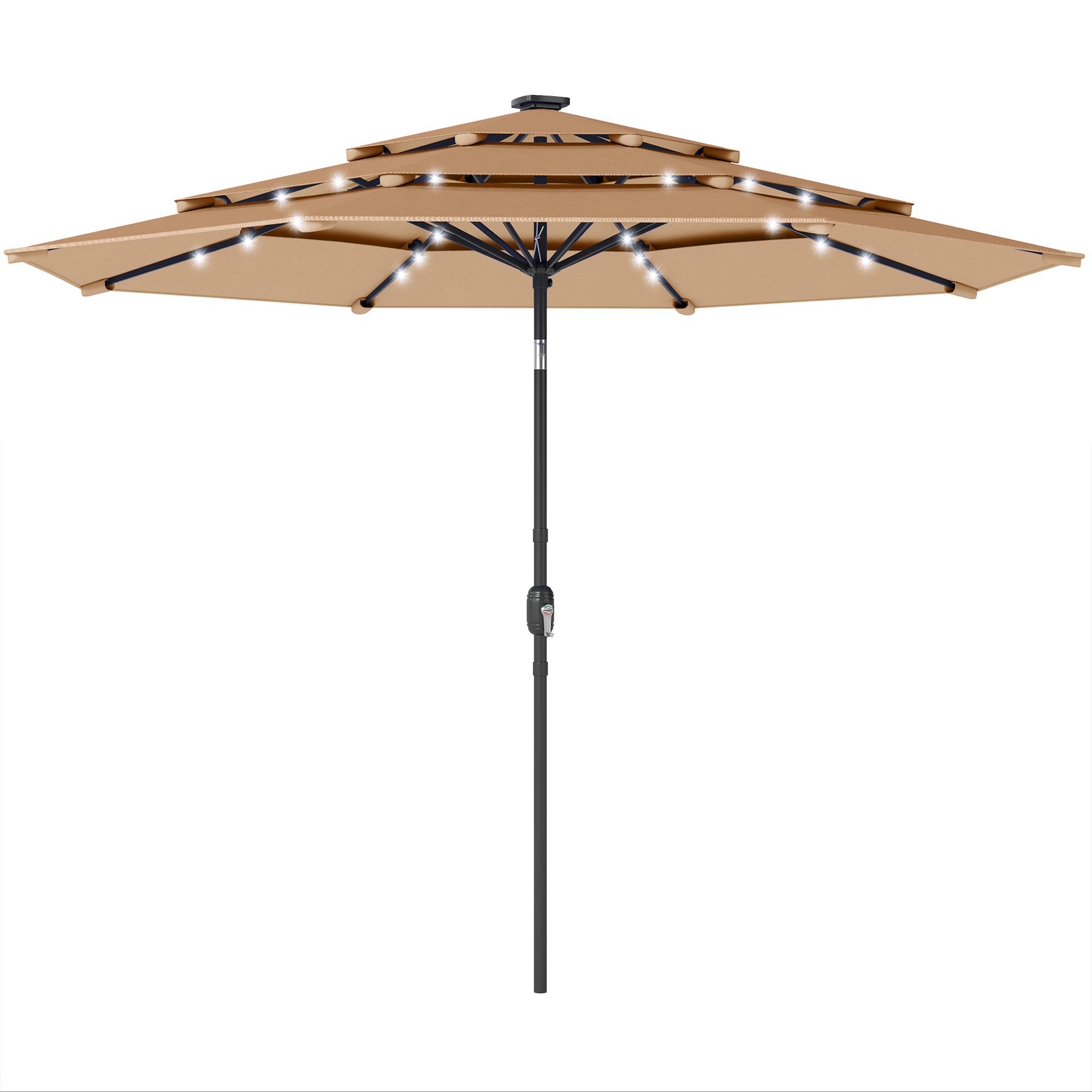 Outsunny 2.8 m Garden Parasol Umbrella with LED Solar Light, Parasol Cover, 3 Tier Outdoor Table Market Patio Umbrella, Khaki