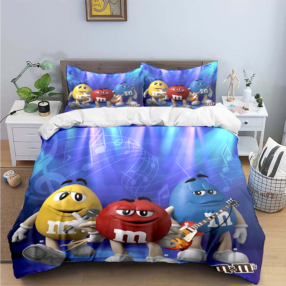 Modische M&M Schokoladen Logo Print Bettwäsche Sets Exquisites Bettwaren Set Bettbezug Bettdecke Set Bettwäsche Set Luxus Geschenk