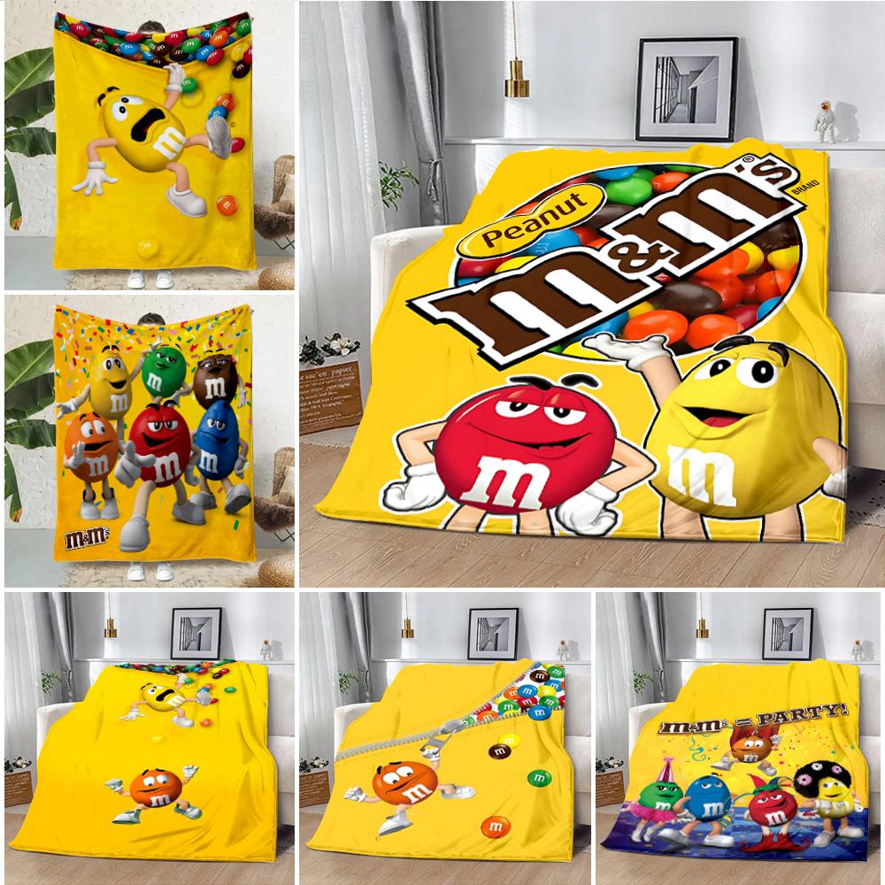 Mode M&M Choklad Logotyp Mönster Filt Stjärna Flanell Tunn Filt Bärbar Hem Resa Kontor Lunchpaus Filt Gåva