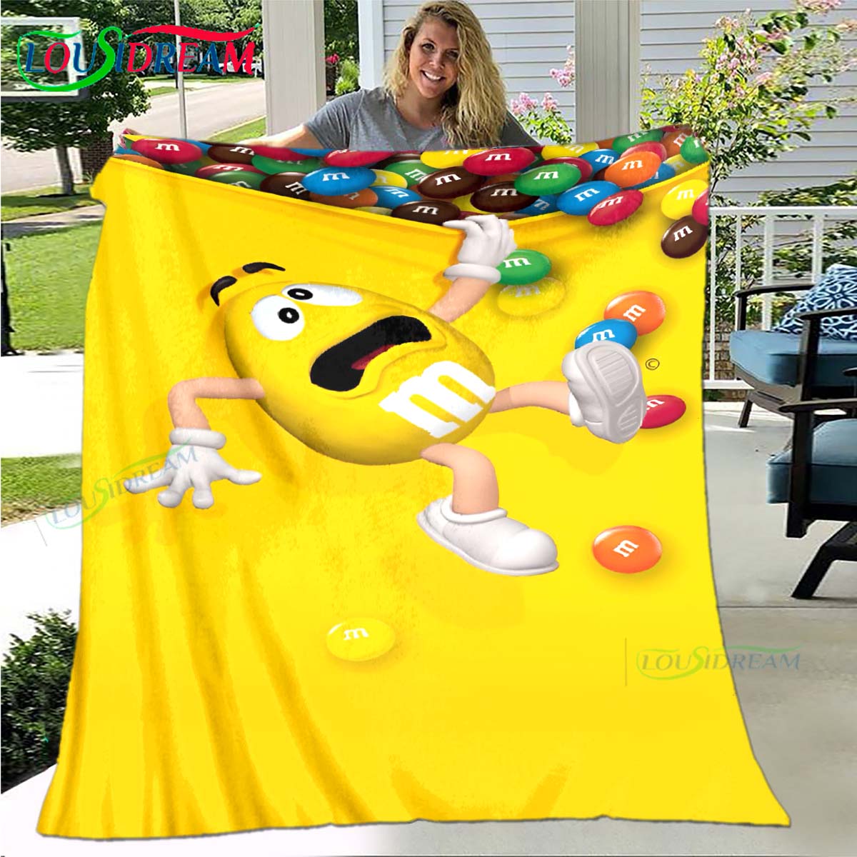 Mote M&M Sjokolade Logo Mønster Teppe Stjerne Flanell Tynt Teppe Bærbart Hjem Reiser Kontor Lunsjpause Teppe Gave